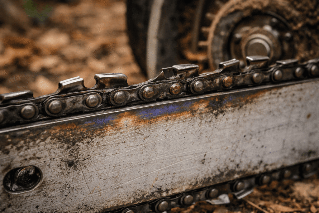 A chain that’s too tight creates friction. Friction creates heat. Heat destroys the tempering of your bar. If you see your bar turning blue or the rails starting to mushroom, your tension is likely the culprit. You’re literally cooking your equipment from the inside out.